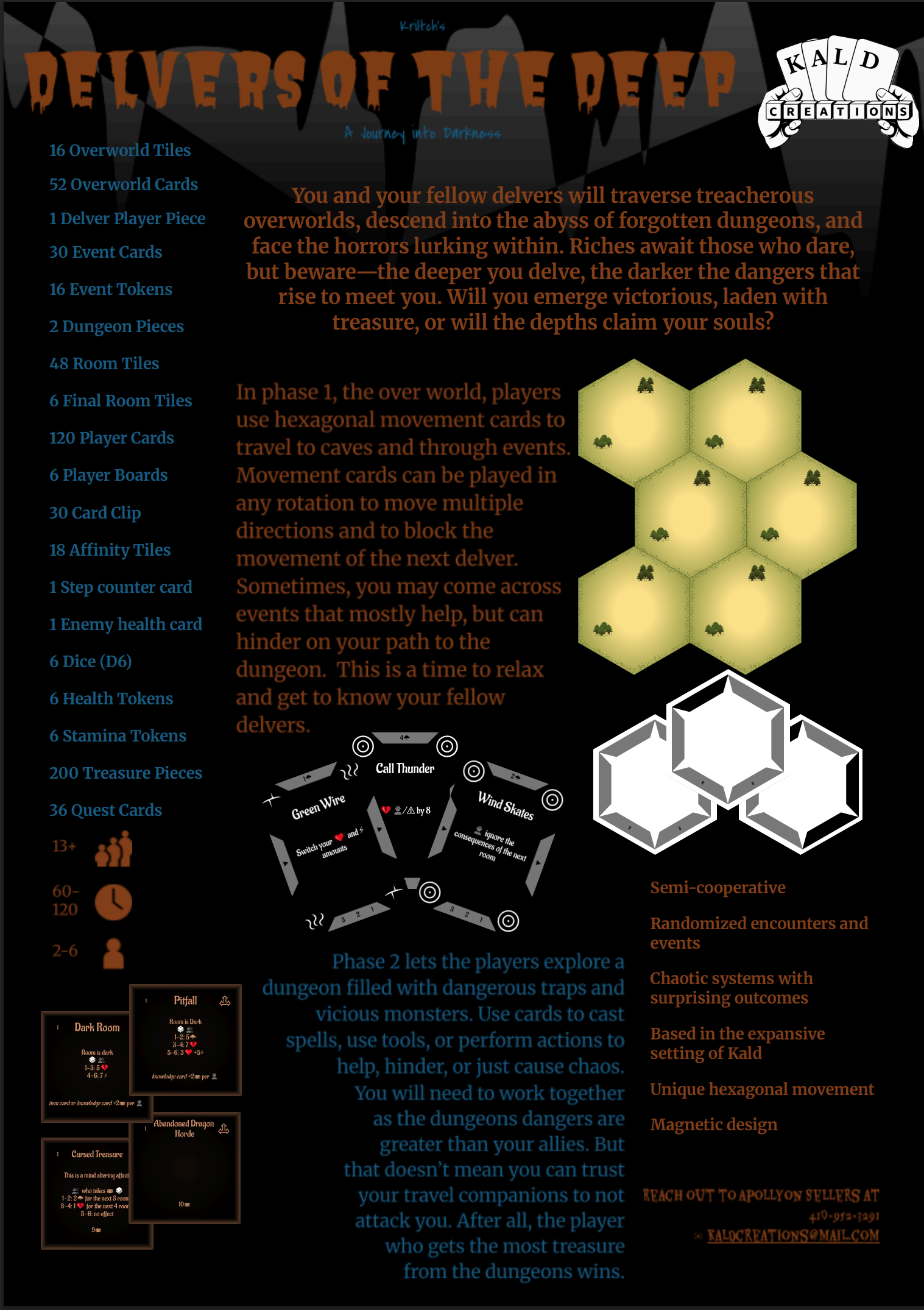 … is a perilous adventure that blends cooperation and competition. Players form a team of delvers and journey from dungeon to dungeon in search of wealth and glory. While alliances may be necessary, betrayal is never off the table.