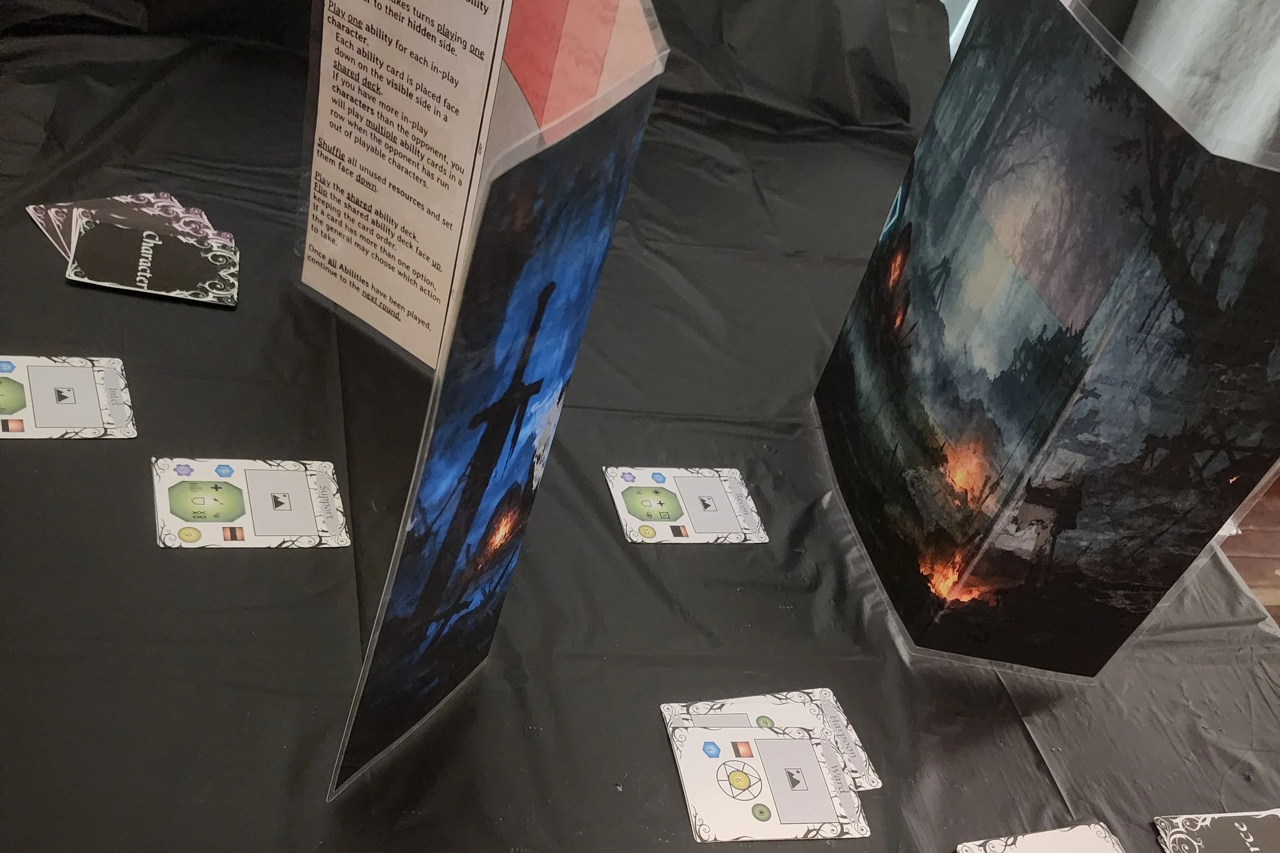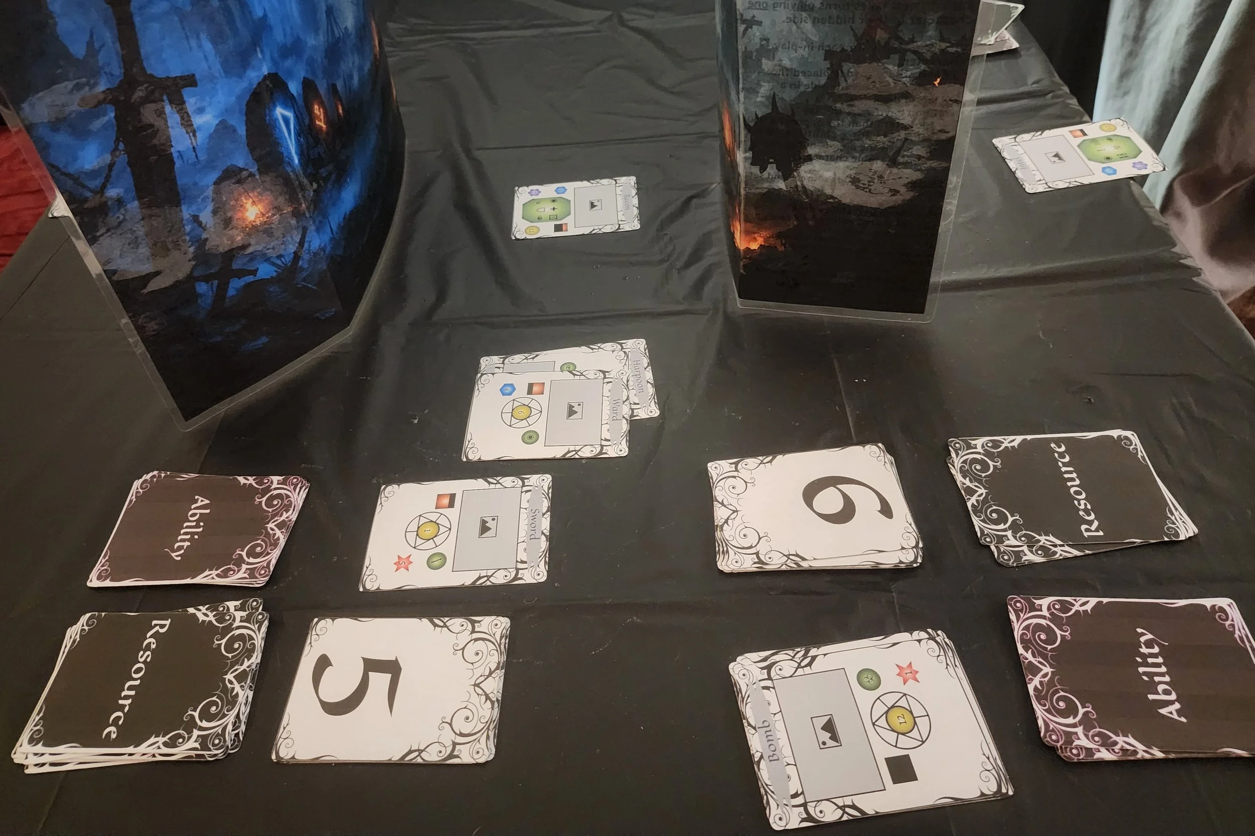 Skirmish…… is a two-player hidden placement card battler. You and a friend play as generals, secretly directing your forces and casting attacks to try to find and eliminate your opponent.